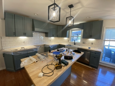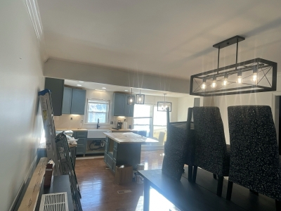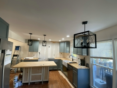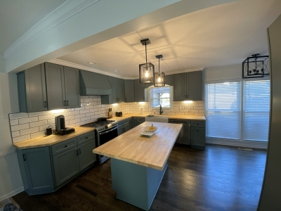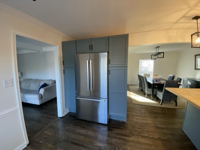 This former pocket kitchen no longer met the needs of a busy family of six. By removing the wall between the kitchen and dining room, we created an open, inviting layout that allows the spaces to flow seamlessly together. A new refrigerator wall replaced the built-in pantry, supporting a cohesive cabinet design that extends into the dining area.